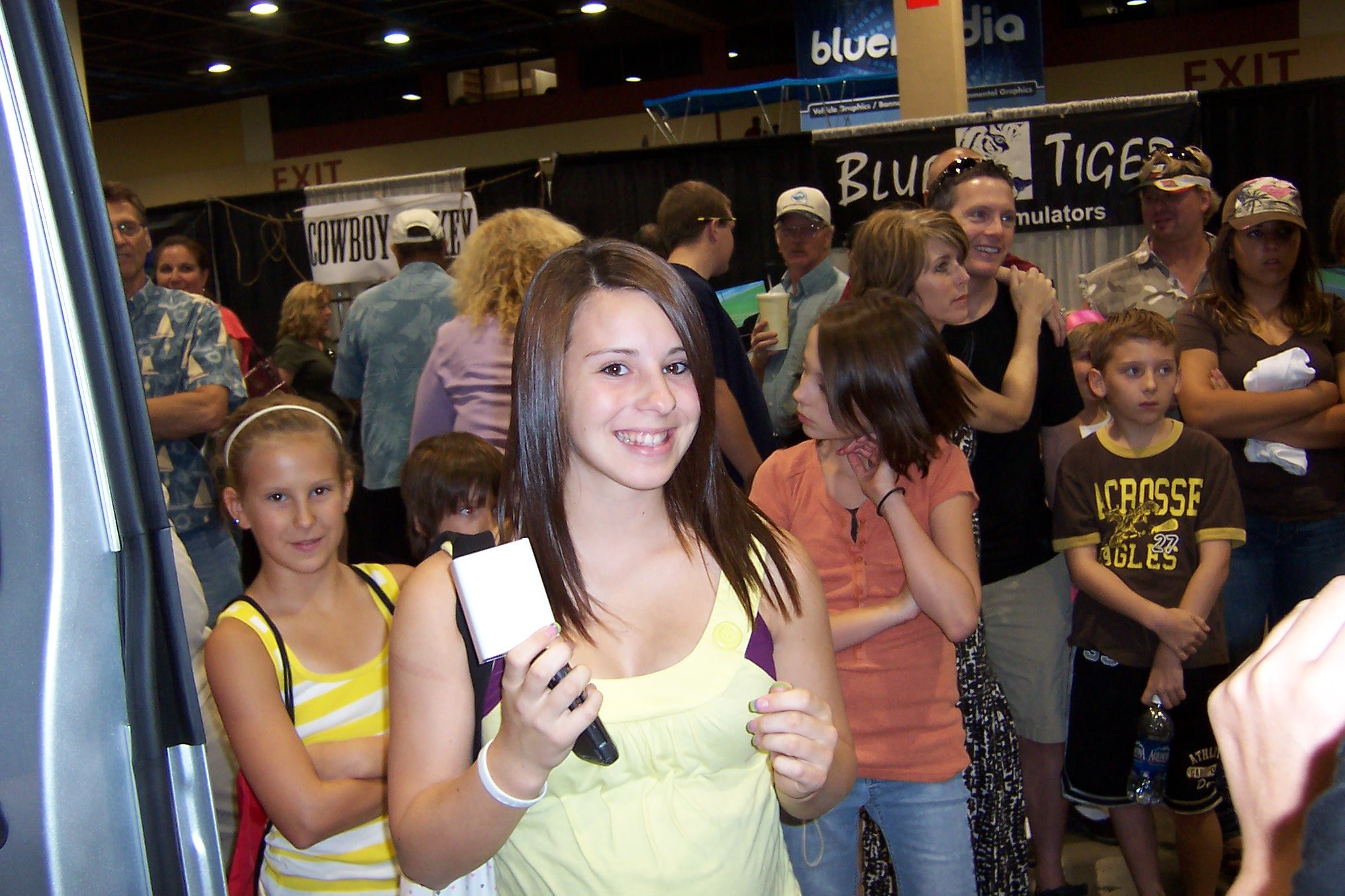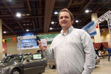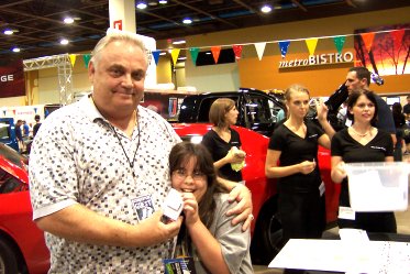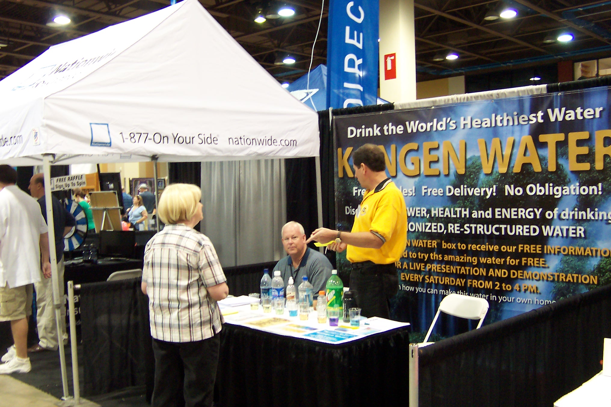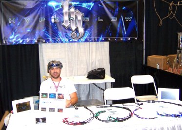 Small inventors and entrepreneurs are always so interesting. To be able to say I knew them when… before they get huge! HyperGlow is one of those exciting businesses. Below are the Nationwide and Kangen booths and to the right a young lady the latest winner in the Jeep/Dodge hourly drawings for an Ipod Shuffle.